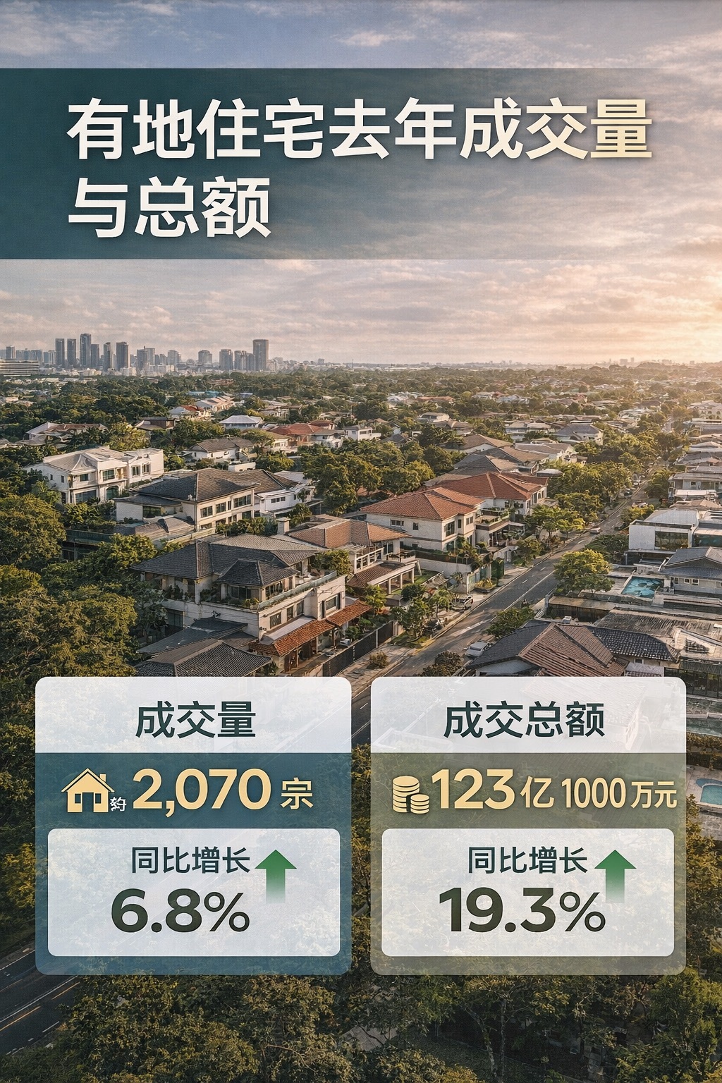 根据房地产经纪公司 SRI 的统计数据显示,2025年有地住宅成交量约2070宗,同比增长 6.8%;而总成交额更是大幅攀升19.3%,达约123亿1000万元,显示买家在价格层级上的承接力明显增强。